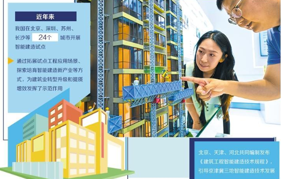 智能建造是建筑业转型发展的重要内容之一。近年来,我国在北京、深圳、苏州、长沙等24个城市开展智能建造试点,通过拓展试点工程应用场景、探索培育智能建造新产业等方式,让这一新型建筑方式加快落地应用,为建筑业转型升级和提质增效发挥了示范作用。