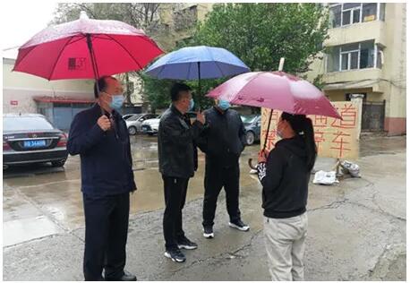 市委政法委下沉机关干部在崇文小区疫情防控卡点执勤时克服一切困难和不利因素,无论什么恶劣的天气也难不倒他们坚强的意志,为了小区居民的健康和安全,他们一直在坚守!这是6月3日深夜在卡点值夜班的同志冒雨执勤,对来往车辆与人员进行扫码、测温、登记、查证,决不放过一丝疫情防控的隐患。