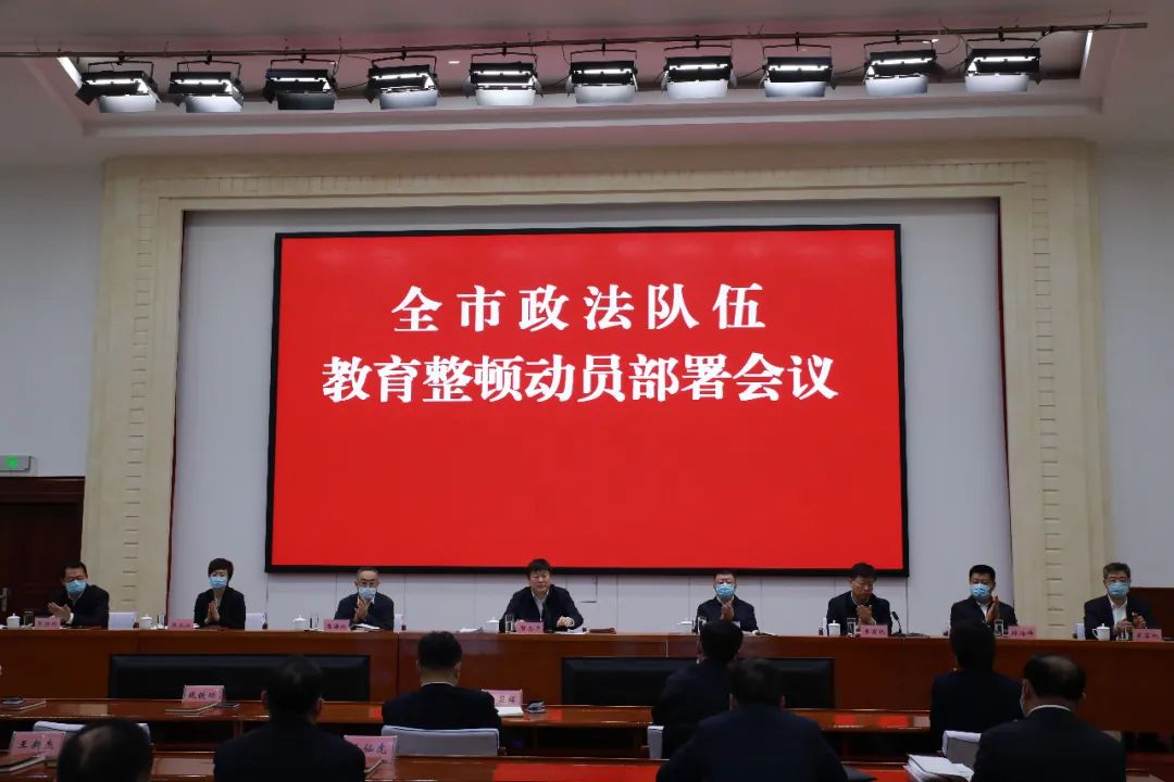 会议指出,要认清当前形势,提高政治站位,切实增强抓好政法队伍教育整顿的责任感、紧迫感和使命感。要从全局和战略高度,深刻理解把握教育整顿重大意义,坚决把思想和行动统一到党中央和省委、市委决策部署上来,抓紧抓实抓好政法队伍教育整顿这一重大政治任务,教育引导广大干警不断提高政治判断力、政治领悟力、政治执行力,进一步增强“四个意识”、坚定“四个自信”、做到“两个维护”,确保始终听党指挥、忠诚使命。