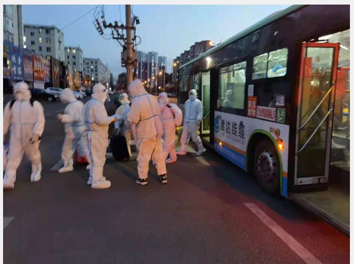 第三分公司安排50余位驾驶员参加核酸检测异常人员转运,服务医护人员通勤等工作。该公司驾驶员保持一贯的公交作风,尽力服务好这些特殊乘客。金牌员工韩治乾接到任务后,每天穿梭于职教园区、各个方舱医院以及有转运任务的街道社区之间。执行任务过程中,他不敢喝水吃饭。自己承担巨大的生理心理压力的同时,他发现车厢内转运人员出现焦躁情绪时还要主动安抚。在一线驾驶员的努力下,第三分公司累计转运各类人员3.2万人次,累计行程近3万公里。该公司还为龙潭区乌拉街满族镇政府等单位提供13台客车,支持核酸采集等疫情防控工作。