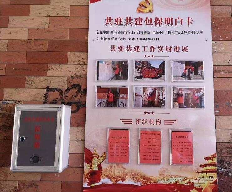 在掌握社区楼体分布后,第一时间组织人员安装共驻共建“明白卡”、意见箱,收集群众意见,掌握民情民意。近日,收集到群众关于小区美化绿化、下水管道堵塞、井盖塌陷等方面诉求5件,正在逐项解决,推进整治,用实际行动化解群众急难愁盼问题。充分发挥部门职能优势,为全市临街小区制作“城市管理便民广告栏”300余套,在沿街小区外墙悬挂,畅通居民发布信息渠道,有效解决随意张贴“小广告”行为。