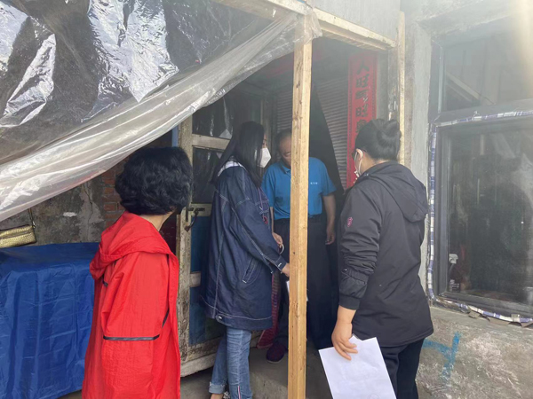 6月15日,丰满街道河南社区社区工作人员挨家挨户排查,以便及时掌握危房情况,确保“不落一户、不落一人”,保障汛期危旧房周边居民生命安全。