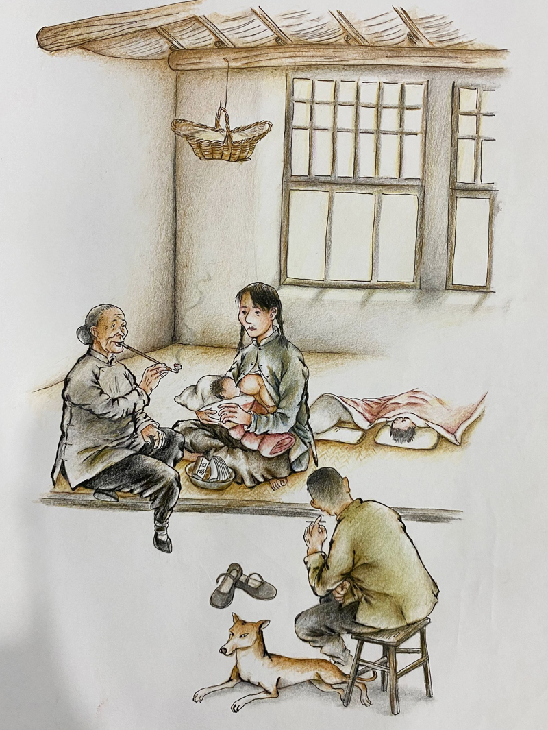 ▲ 母亲撇下出生几天的老弟去看病,后院儿白大娘每天把喂给自己孩子的奶舍下一口给老弟。老弟挺皮实地活了下来。爷爷给他起个名字叫铁蛋子。