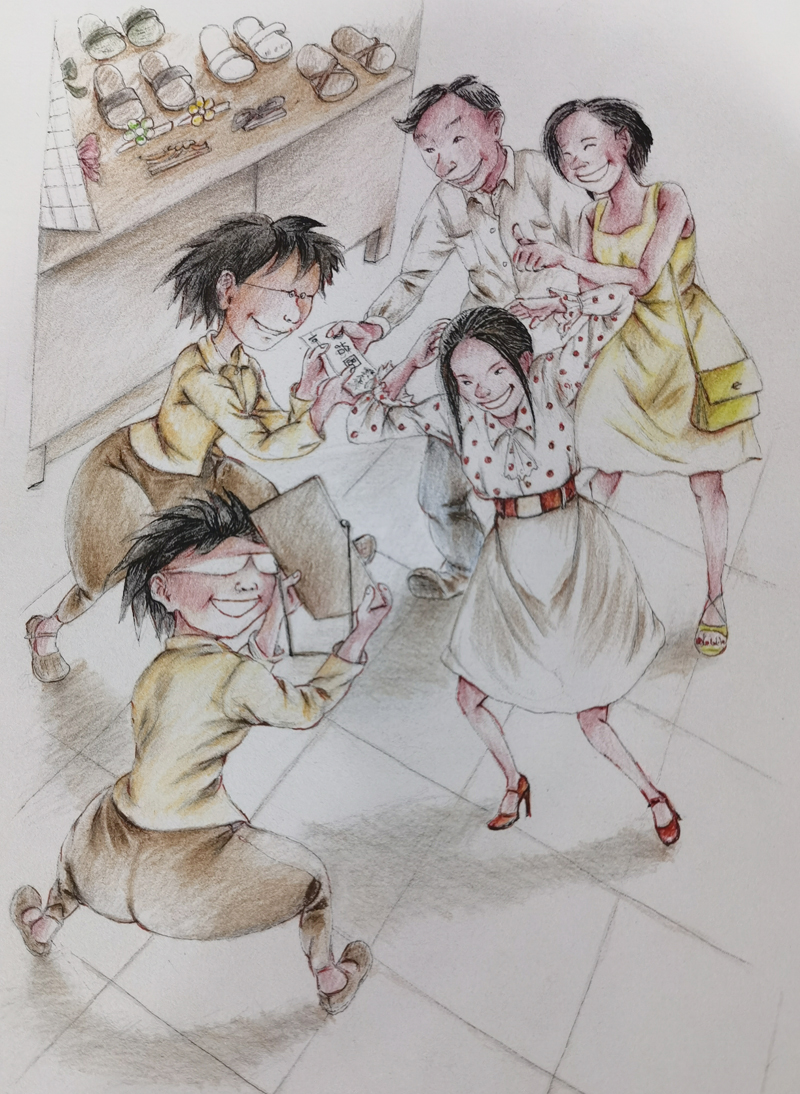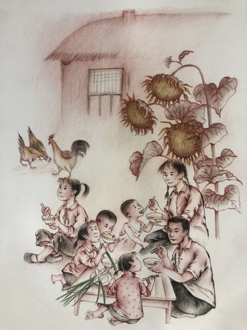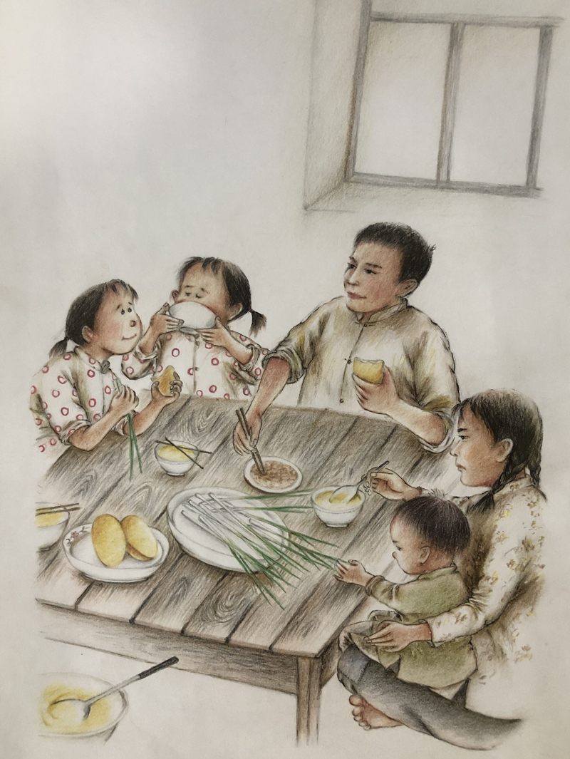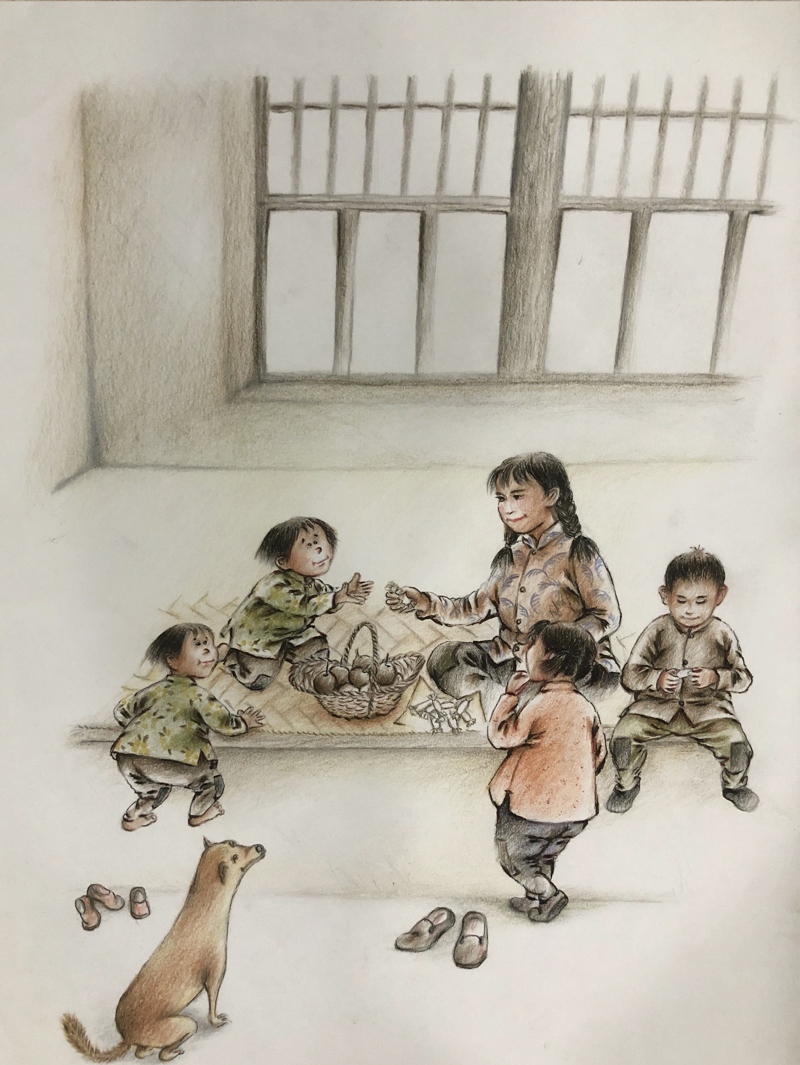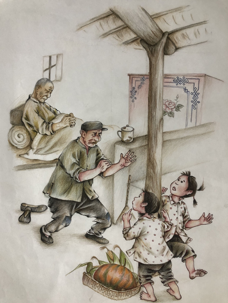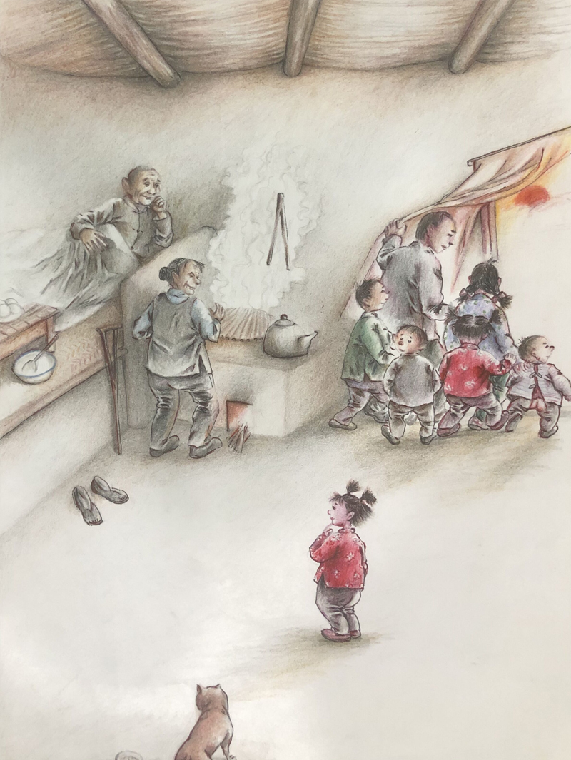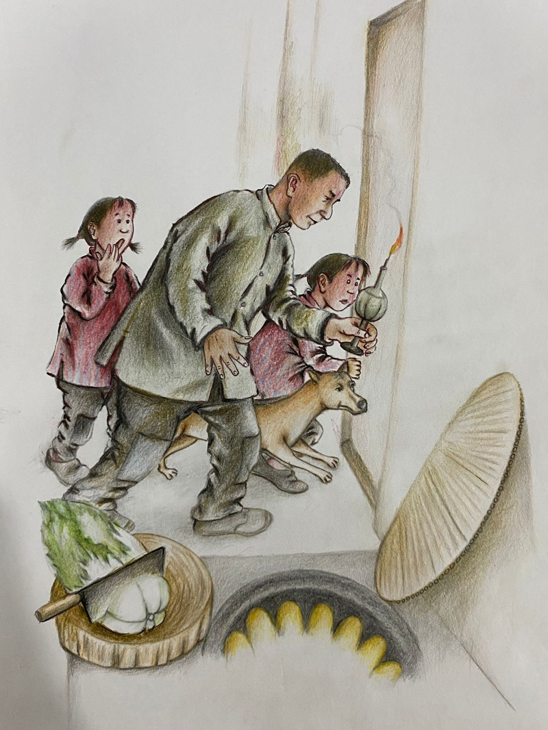 ▲ 大年初一,父亲带我们六个孩子到隔壁给爷奶磕头拜年。怕羞的小双子不肯下跪,父亲一怒之下,不许小双子回去吃饺子。