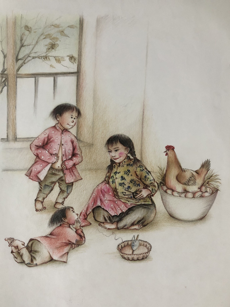 ▲ 直到母亲换上以前在家常穿的衣裳,才感觉到母亲真正回来了。从那时起,我俩每天除了看老弟,还看鸡屁股。那时,一年的油盐、针线、火柴等,全靠攒点儿鸡蛋卖几个钱来买。不看好鸡屁股,鸡把蛋说不定就下到谁家去了。