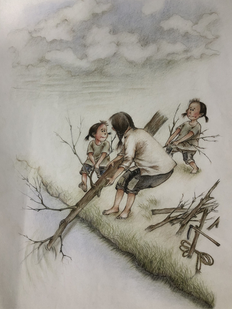 ▲ 雨住了,天放晴了。母亲兴冲冲地下河,捞起从上游飘过来的树棒子、树杈子,晾干烧火。木头火,夏天烤苞米金黄焦香;冬天烧炕,大炕热乎到天亮。