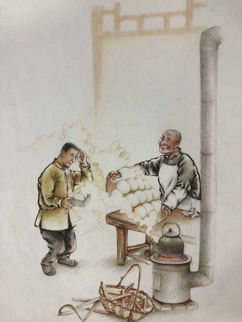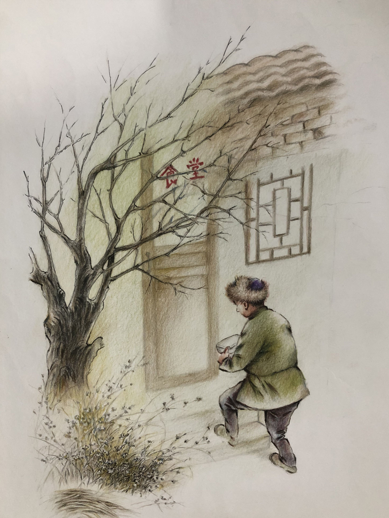 ▲ 快过年了,父亲想多割两斤肉,再买几样好嚼谷,孩子们盼了一回年。可是,父亲心有余力不足!咋整呢?父亲琢磨了半宿,和谁张口呢?忽啦一下,想起扛麻袋的伙计们说起过,食堂做饭的老爷子家趁,攒钱卧粮的,没儿没女没负担。可是,人家不认识自己,能借给吗?父亲想。晌午,父亲约摸食堂吃饭的人应该都走得差不多了,就鼓足勇气走了进去。