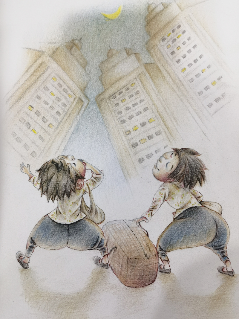 ▲ 走出农村,在城市安家落户,穿上漂亮的裙子,逛逛街,溜溜公园,看场电影。这是我俩认为的城里人生活。虽然已经在城里了,但离城里的这一切还是很遥远。看到城市万家灯火之时,我俩追逐着每一扇窗户亮起来的灯光,渴望有一盏灯能照到我俩,成为我俩的归宿。这盏灯后来找到了,我俩的生活也暂时安定下来了……