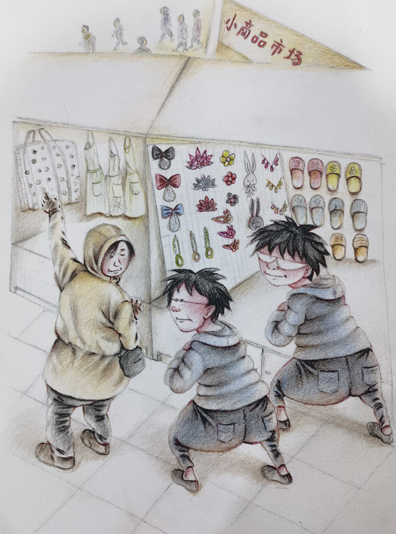 ▲ 后来,连那三个忠实的老顾客也不来了。天冷了,山东大姐中午出去吃了碗热乎乎的馄饨回来说:你俩也赶紧出去吃一碗,暖乎暖乎身子,姐妹俩一起去,我给看摊子。天天不开张,我俩没心思,也舍不得吃东西,但是山东大姐好心好意地一再催促。去吧,一天挣不来一碗馄饨钱;不去吧,让人觉得信不过人家帮看摊子似的。最后,还是去了,但没去吃馄饨,到厕所里磨蹭半天回来了。山东大姐问:“吃了?”我俩差不多一口同声:“吃了!”