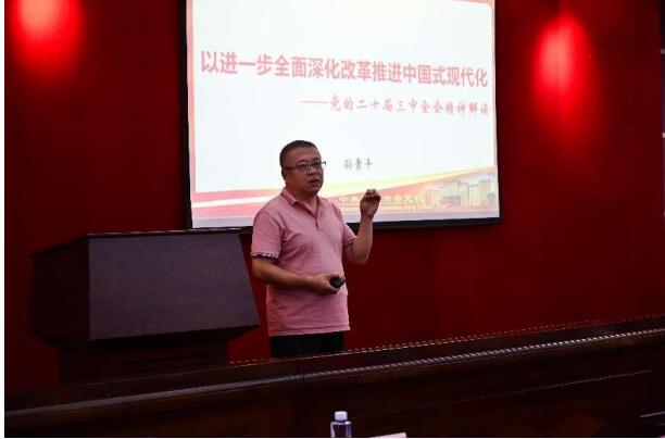 随后,在全省上下深入学习贯彻党的二十届三中全会精神之际,参会的全体理事会成员听取了由吉林市委党校法学教研部孙贵平教授,主讲的题目为“以进一步全面深化改革推进中国式现代化---党第二十届三中全会精神解读”的宣讲课。吉林市社科联张纯国主席、吉林市社科联学会部王雷部长、研究会全体理事会成员认真参加了学习。