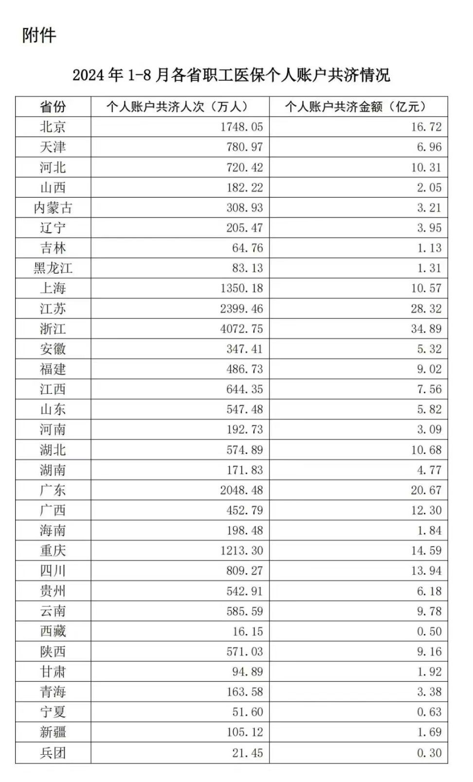 附件:2024年1-8月各省职工医保个人账户共济情况