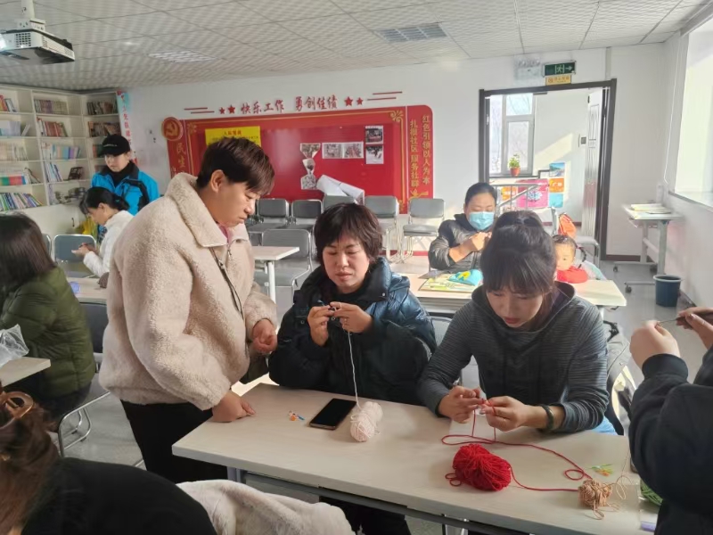 色彩斑斓的毛线和精致的钩织工具整齐摆放在桌子上,“先这样绕线,钩9个辫子针……”老师耐心地演示着每一个步骤,从挂线、起头到钩线,都一一讲解。有的居民有钩针编织基础,熟练地进行操作。没有基础的居民则互帮互学,共同进步。