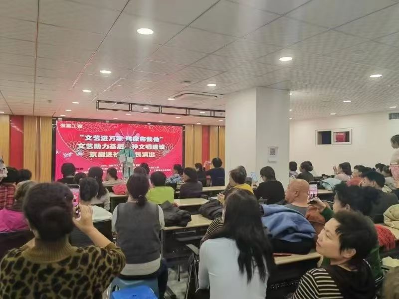 本报讯(全媒体记者 彭川)近日,“文艺进万家 健康你我他”丰满区文艺助力基层精神文明建设活动在建华街道铂悦社区新时代文明实践站举行。精彩纷呈的京剧进社区惠民演出,让居民在“家门口”过足戏瘾。