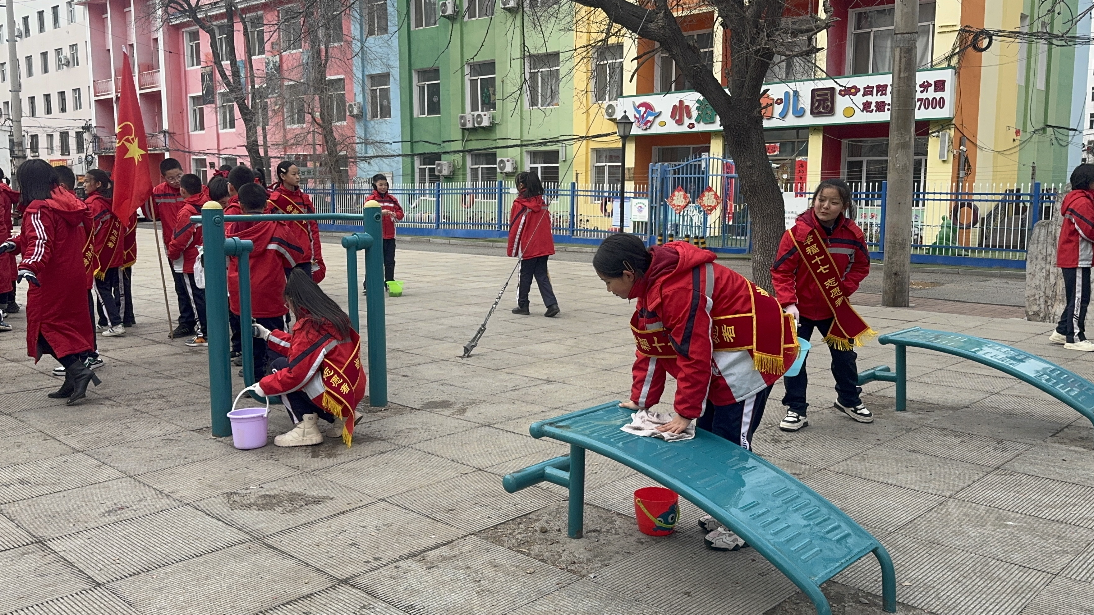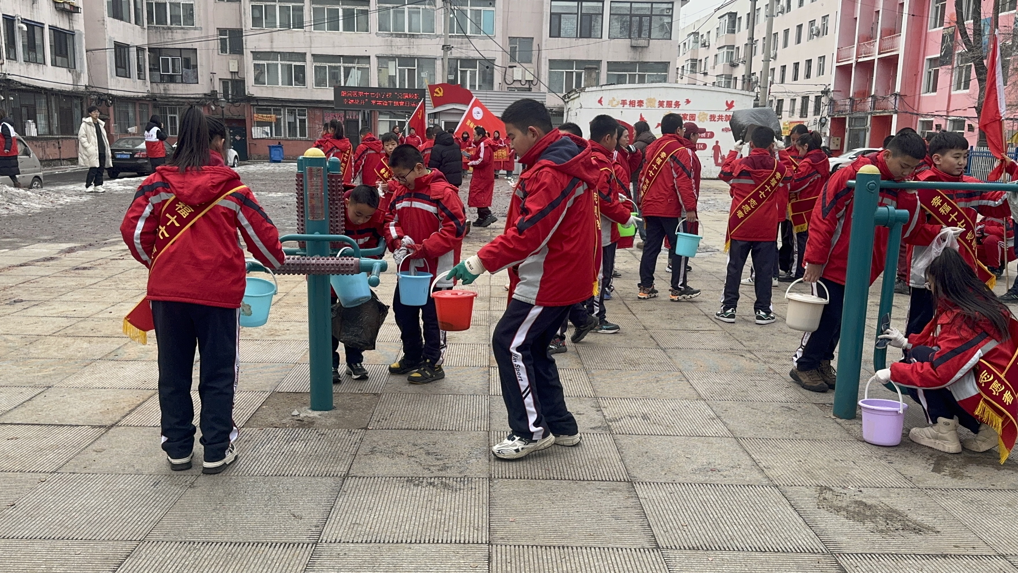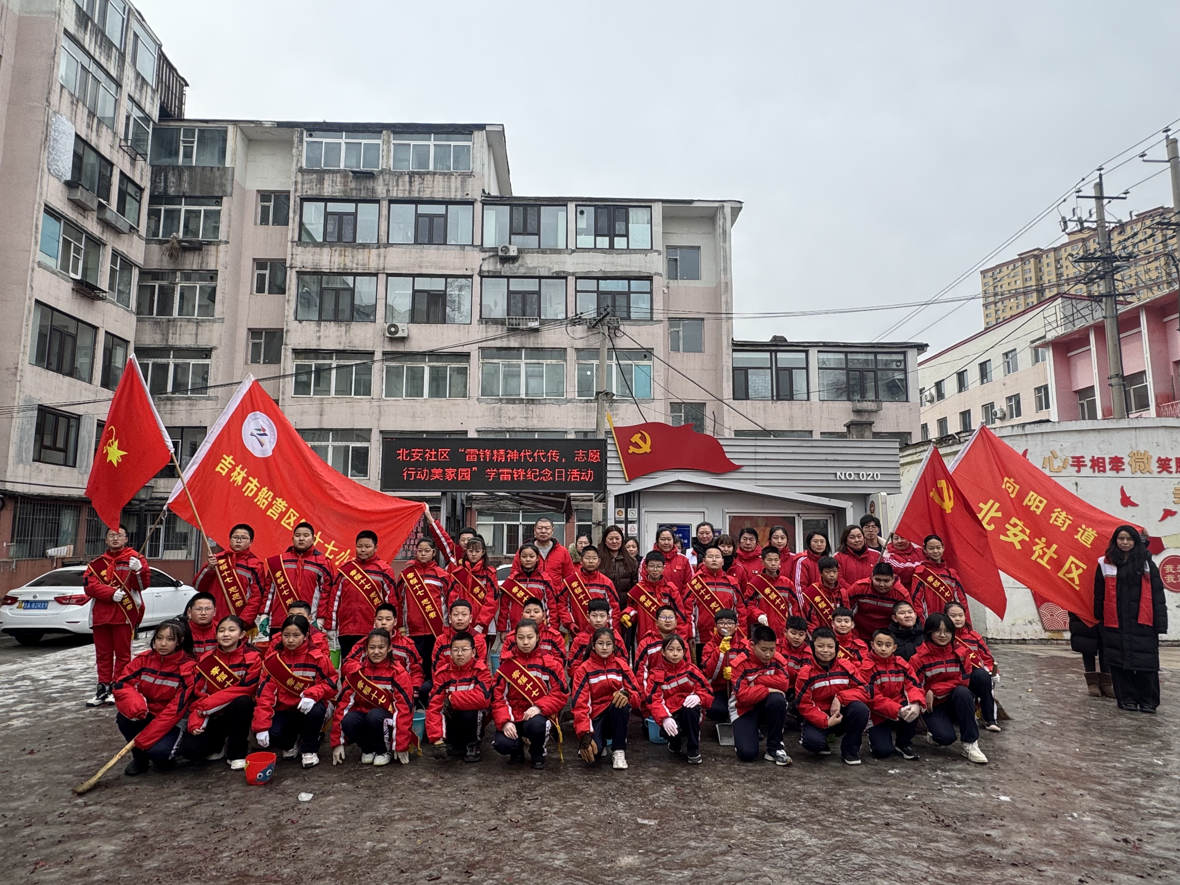 2025年3月4日下午,向阳街道北安社区联合党建联盟单位吉林市船营区第十七小学在北安社区文化广场开展“雷锋精神代代传 志愿行动美家园”学雷锋纪念日志愿服务活动。此次活动旨在弘扬和培育新时代雷锋精神,倡导社会文明新风,增强青少年的社会责任感,同时改善社区环境,营造更加宜居的生活氛围。