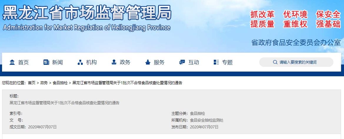 中国质量新闻网讯 2020年7月7日,黑龙江省市场监督管理局网站发布关于1批次不合格食品核查处置情况的通告。据通告,国家市场监督管理总局发布的《关于24批次食品不合格情况的通告》(2020年第11号),涉及黑龙江小慈生态农业发展有限公司生产的东北黑蜂雪蜜。