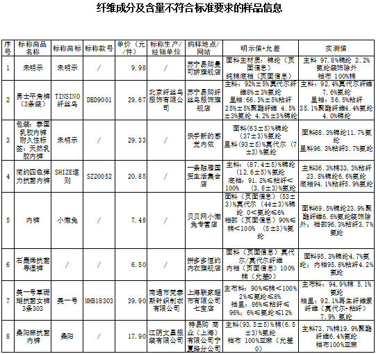 中国消费者报报道(记者刘浩)消费者追求健康高品质生活,越来越重视贴身服装的卫生性能,使得具有抗菌效果的内衣(裤)逐渐受到众多消费者的关注。近日,上海市消费者权益保护委员会对40件抗菌内衣(裤)样品开展了比较试验。结果显示,有1件样品化学成分超标,8件样品纤维成分及含量不达标。