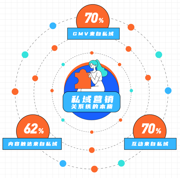 2021年光合创作者大会公布数据显示,快手70%的GMV来自私域,62%的内容触达来自私域,70%的互动来自私域,高频互动激活了独特的信任转化方式,2021年9月,快手电商重复购买率为70%+(数据来源:快手Q3财报)。