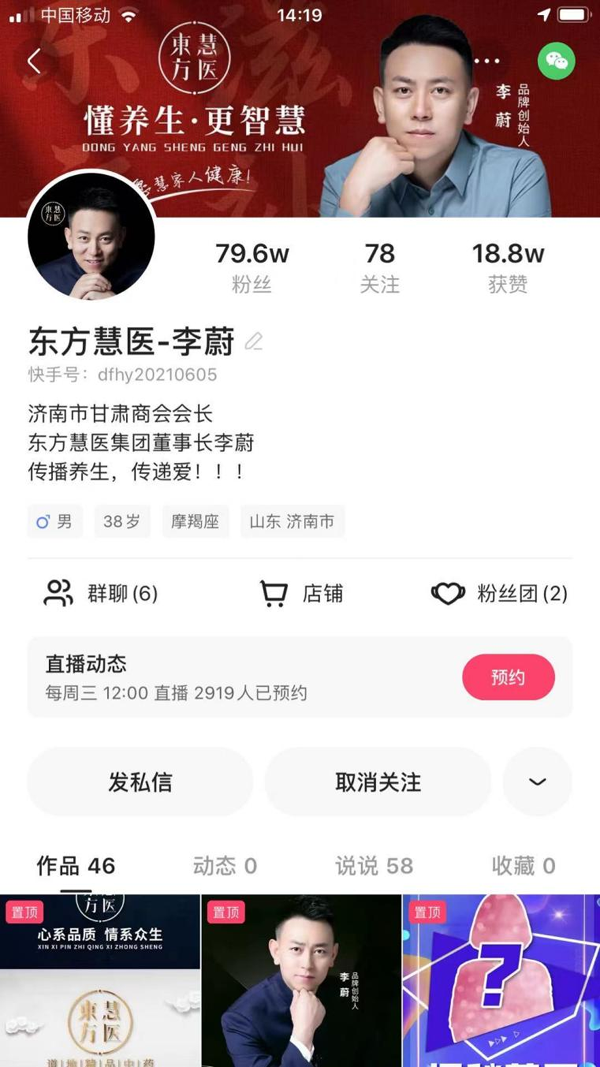 李蔚介绍,因为公司长期给药房供货,货到哪里,发票、检验报告、企业资质等这些是必须要全程随货同行的。所以,在直播间会把这些东西拿出来给大家看,虽然隔着屏幕,也让粉丝们了解到买到手的东西是有质检的,是正规厂家的,是放心安全的。经过长时间的积累,很多人把产品买回去以后发现东西确实好,一传十十传百,慢慢的粉丝多了,回头客也就多了。从2021年6月5日开播以来,东方慧医快手粉丝总数为79.6万,快手小店总销量31.3万件,星级体验五颗星。