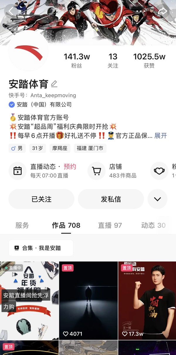 借助快手的私域属性,沉淀粉丝资产,强化年轻、运动的品牌定位,是安踏更为首要的追求,在此基础上,安踏采用“文化孵化+粉丝培育”策略,试图打造国货潮牌的品宣窗口。