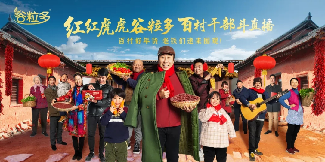 在众多品牌争奇斗艳的营销案例中,伊利谷粒多选择了一种“人多力量大”的模式。谷粒多联合著名表演艺术家冯巩拍摄的微电影《我和我的村》,讲诉了通过直播助力乡村振兴的故事。顺势将微电影里的“虚拟”故事,搬到了现实中,磁力聚星也邀请到了百村村干部参与直播带货,不但彰显了在新市井生态下各地方的特色风土人情,把村里的好货推荐到全国,也实现了谷粒多品牌在全国各地的推广渗透。最终,整体活动互动量超百万,冯巩发布的活动短视频播放量更是突破4975万。