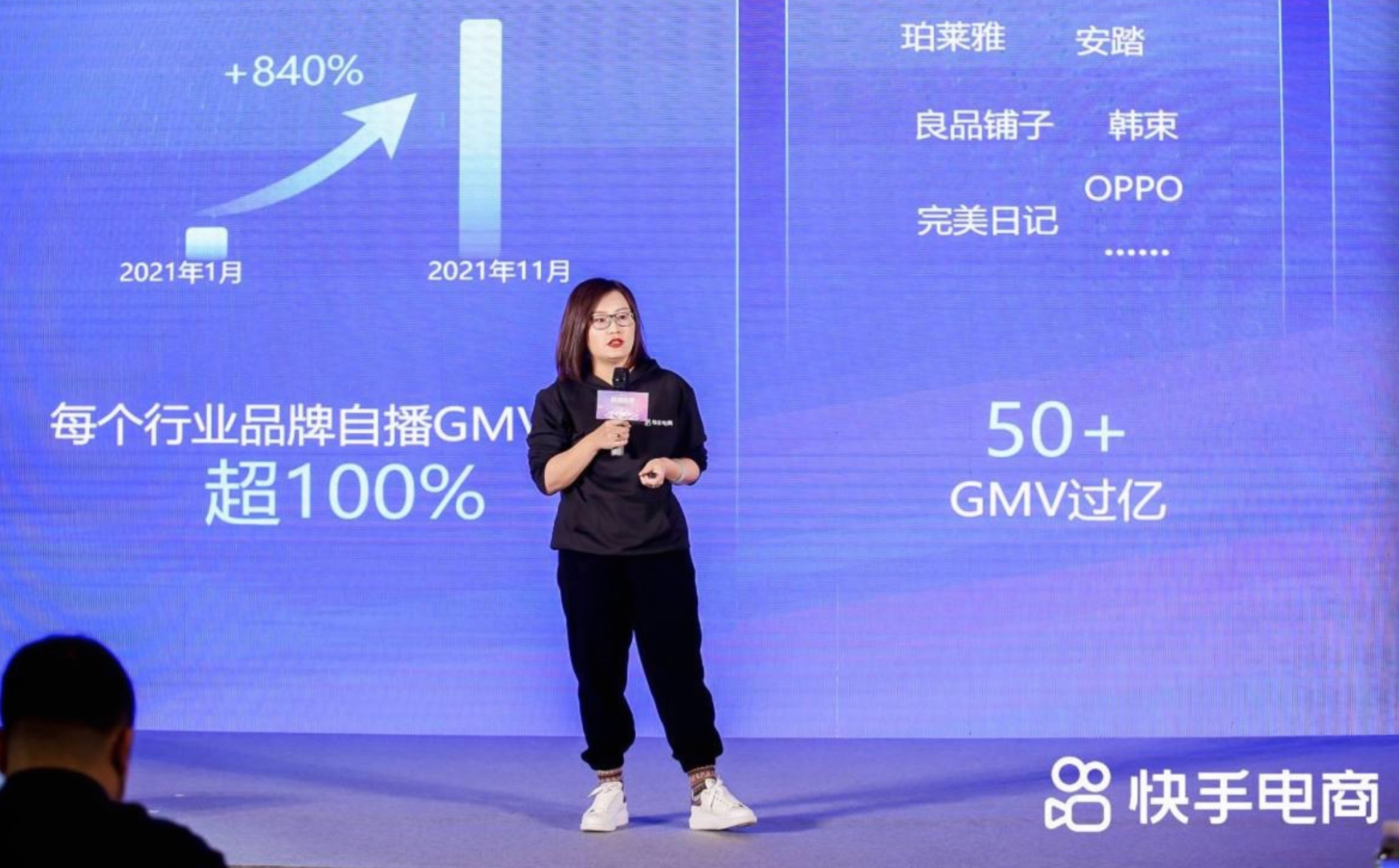 当前,众多品牌加速布局快手电商,平台用户消费需求持续释放。据快手KA品牌美妆个护负责人周文杰介绍,2021年,有超过1000家行业风向标品牌入驻快手电商,同比增长186%。2021年12月相较于1月,品牌自播GMV增长了1073%,全年有超过50家品牌实现年GMV过亿,超过120家品牌实现年GMV超过5000万。