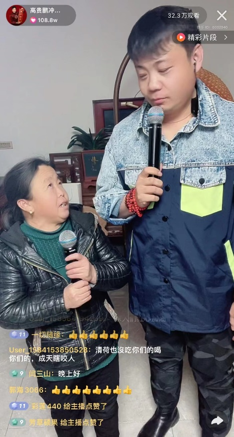 “一根藤上哎,长出三个瓜,我的娘亲呦,你养出我们儿女仨,一个苹果哎,你分成三瓣儿,你也不肯尝一下,全给我们三个娃......”陕北民歌独特的韵味加上高贵鹏深情的演唱,一首《妈妈》让直播间的粉丝们红了眼眶。