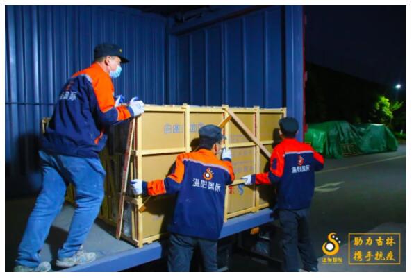 2022年3月25日上午,温阳国际集团捐赠的数十台移动盐疗设备已全部装车完毕,李虎董事长亲自带领老兵指战团队奔赴吉林方舱医院,协助吉林人民一同打赢此次防疫战争,待疫去春来,共赏花开。