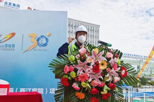 复工仪式上,碧桂园西江宸院项目总经理陈炫维总发言表示,感谢各方领导对项目一直以来的支持和帮助,也感谢各位工友的辛苦劳作,是从上到下,从独立到集体,万众一心的团队精神使得项目稳步前行。他也相信,在碧桂园经过30载不懈发展的经验下,如今,依托吉林船营这片热土与团队的齐心协力,在2022年这一崭新时节,会创造出更多精彩。
