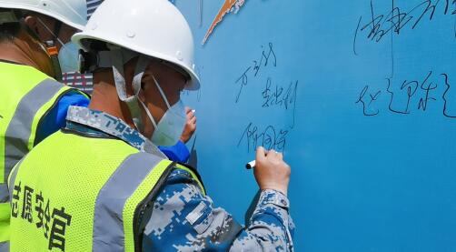 在领导的带领下,全体工友们有序的走到台上,在本次主题上背景上前签下自己神圣的名字,随着主持人宣布,“碧桂园西江宸院项目吉林碧桂园西江宸院2022年项目复工仪式暨安全生产月活动圆满结束”,也标志着复工新征程的开启!专业的工作计划部署,各部门的明确分工,让我们看到了大品牌的规范与团队的专业,庄严的宣誓与承诺签署,更彰显了品牌的担当与实力。