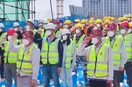 施工单位安全负责人刘帅 带领全体人员进行宣誓,团队承诺将自身安全作为现场生产工作的前提,在高质高量完成工作的基础上,保障施工安全,相关工作制度落实到位!