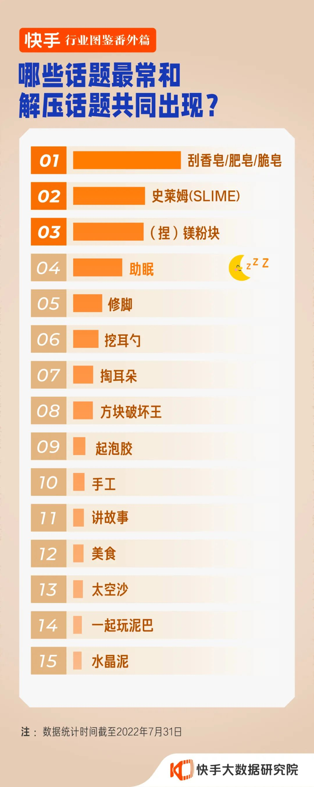 在快手,除了刮香皂、史莱姆、捏镁粉块等专门用来解压的视频,最常和解压话题共同出现的就是“助眠”。