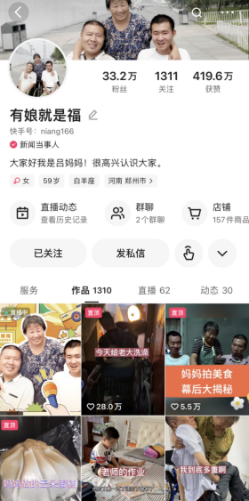 在吕妈妈的努力下,有几个视频火了,播放量到了400多万,粉丝也积累了起来,到了几十万。