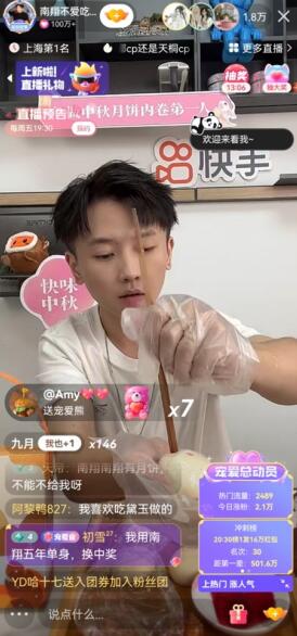 靠复刻“宫廷御菜”在全网走红后,“南翔”的快手粉丝量不断攀升,如今已突破1250万。此次直播中,“南翔”也在多轮抽奖环节里,送出了亲手制作的茅台馅冰皮月饼和螺蛳粉馅苏式月饼,回馈一直以来支持自己的粉丝们。