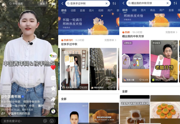 为了给用户提供更具趣味、更显意义、更为难忘的节日活动体验,今年中秋,快手站内超16个垂类、上百家媒体及海量内容制作者,从吃喝玩乐、习俗科普、陪伴关怀等多个层面入手,将时尚与传统、文化与日常有机融合,打造了互动感十足的线上节日氛围,以贴近生活的味道呈现这场节日盛宴。
