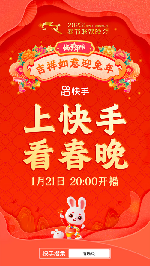 上快手搜索「春晚」,除夕晚上8点热热闹闹看春晚,一家人感受红红火火的年味儿,我们不见不散!