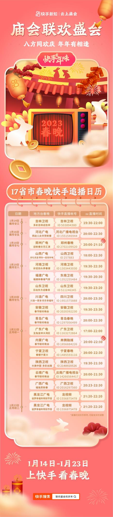 原标题: 2023年春晚节目单正式公布,除夕相约快手共享大联欢