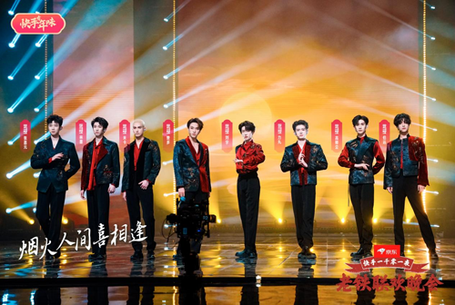 除了温暖回忆杀,快手“铁晚”上还有各种意想不到的跨界组合,碰撞出了奇妙的火花。来自快手的普通电焊工组成的限定版乐队,与意气风发的少年组合INTO1带来国风唱跳版的《天涯》。舞台上,一边是青春酷飒的英气少年,一边是拿着电火花吉他、电火花鼓、二胡、古筝等碰撞出绚丽火花的乐队,在电光火石间唱响江湖烈烈,让人看得热血沸腾。