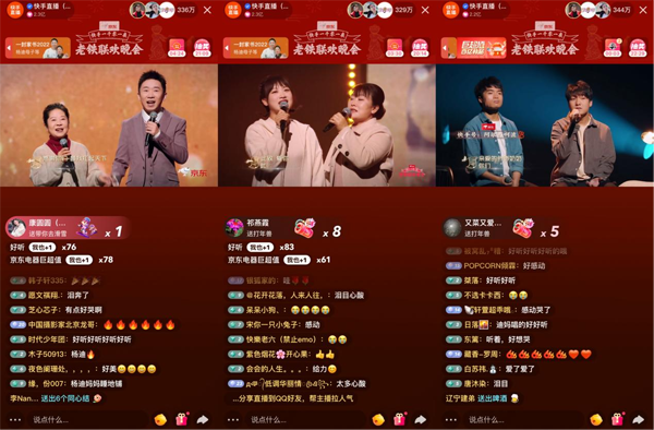 在春节这个阖家团圆的时刻,家是最能引发人们情感共鸣的主题。杨迪母子与来自快手的羊肉西施郭柳玲母女、保安小兄弟阿敏与啊波从不同视角,唱出了属于自己的《一封家书》,各自诉说着对家人的牵挂,那些平时说不出口的心里话感染着屏幕前的老铁,直播间被“泪奔了”“有点好哭”“催人泪下的节目”持续刷屏。