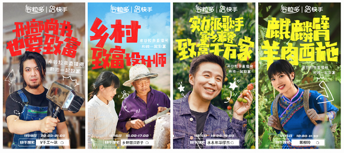 “共富计划”发起后,快手与谷粒多携手,以品牌之力打造1 V N的带富模式,以“钱兔似锦 多多谷粒”为主题,陆续落地系列直播。包括郭柳玲、水木年华缪杰、乡野丽江娇子、手工耿、刘妈妈的日常生活、云南小花、咖农叶萍在内,来自全国各地的“乡村CEO”齐聚快手直播间,共同分享个人成长故事,以及各行各业的致富经验,带领广大农户和乡镇创业青年一起“建设新农村,共奔富裕路”。