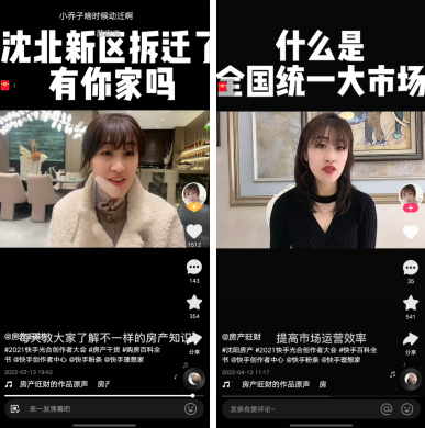 “现在整个沈阳房产市场30%的成交额都是由快手主播提供的,当地的开发商们也会经常和快手平台、快手主播合作宣传,平台对于房产行业的约束,也带着当地房产市场向更加正规化方向发展”。
