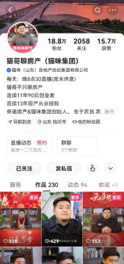 “快手用户年龄符合市场的购房群体,县城、乡镇等用户基本都在玩快手。”有了数据支撑,聂伟毅然注册了“猫哥聊房产”快手账号。
