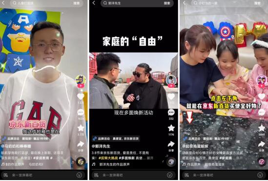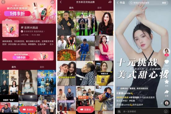 在与短视频直播平台的合作上,京东新百货联合快手打造节日营销新玩法,通过话题挑战赛、短剧营销合作、达人种草等多元的宣推矩阵,在快手以内容场撬动生意场,收获了55亿曝光。充满娱乐性和话题性的内容,不仅帮助京东新百货3·8节完成“焕新真便宜”和“全品类爆发”的用户心智渗透,还成功带动品牌活动的声量突围、销量转化以及女性用户占比增长。