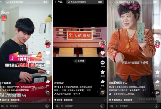 在宣推节奏上,活动采取批量短剧包段上线方式,短平快地击穿节点流量。据悉,快手与京东新百货联合推出7部短剧,并把25集植入剧集放在3.8节核心期集中上线,面向短剧用户实现多部剧短期轮番触达,更加契合电商节点营销的节奏。除了常规曝光,快手还为京东新百货在站内创立“焕新剧场”专属频道页,吸引目标用户沉浸式煲剧,与品牌建立深度链接。