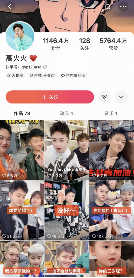 不断学习、反复练习的高火火,也用他的真诚感染着粉丝。随着与粉丝的互动越来越频繁,经常会有老铁在热门热曲下面直接艾特高火火,他总能快速学习演唱并在线向粉丝“交作业”。正如高火火所说“只要你开心要我干嘛都好”,宠粉程度可见一斑。