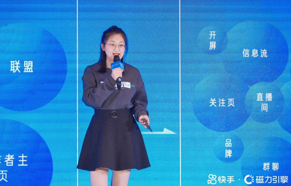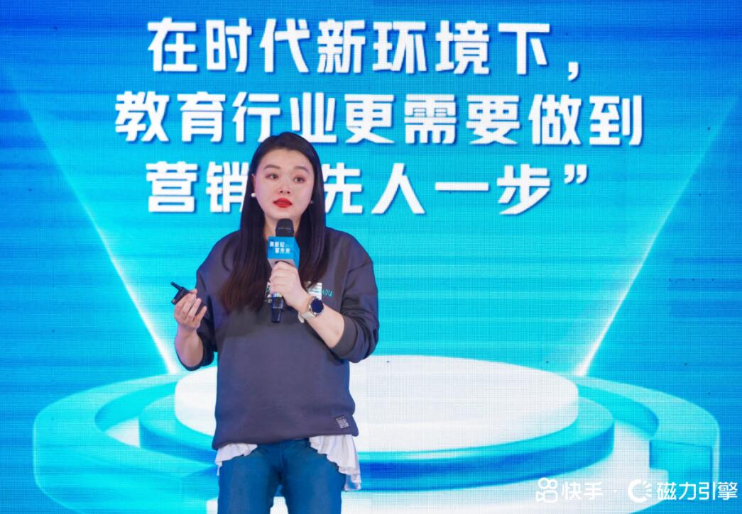 会上,快手教育垂类运营负责人覃英向与会嘉宾分享了快手平台在教育行业中内容生态增长的成果,帮助教育行业跃迁生长,以磁力为动力,共同探索、共擎未来。