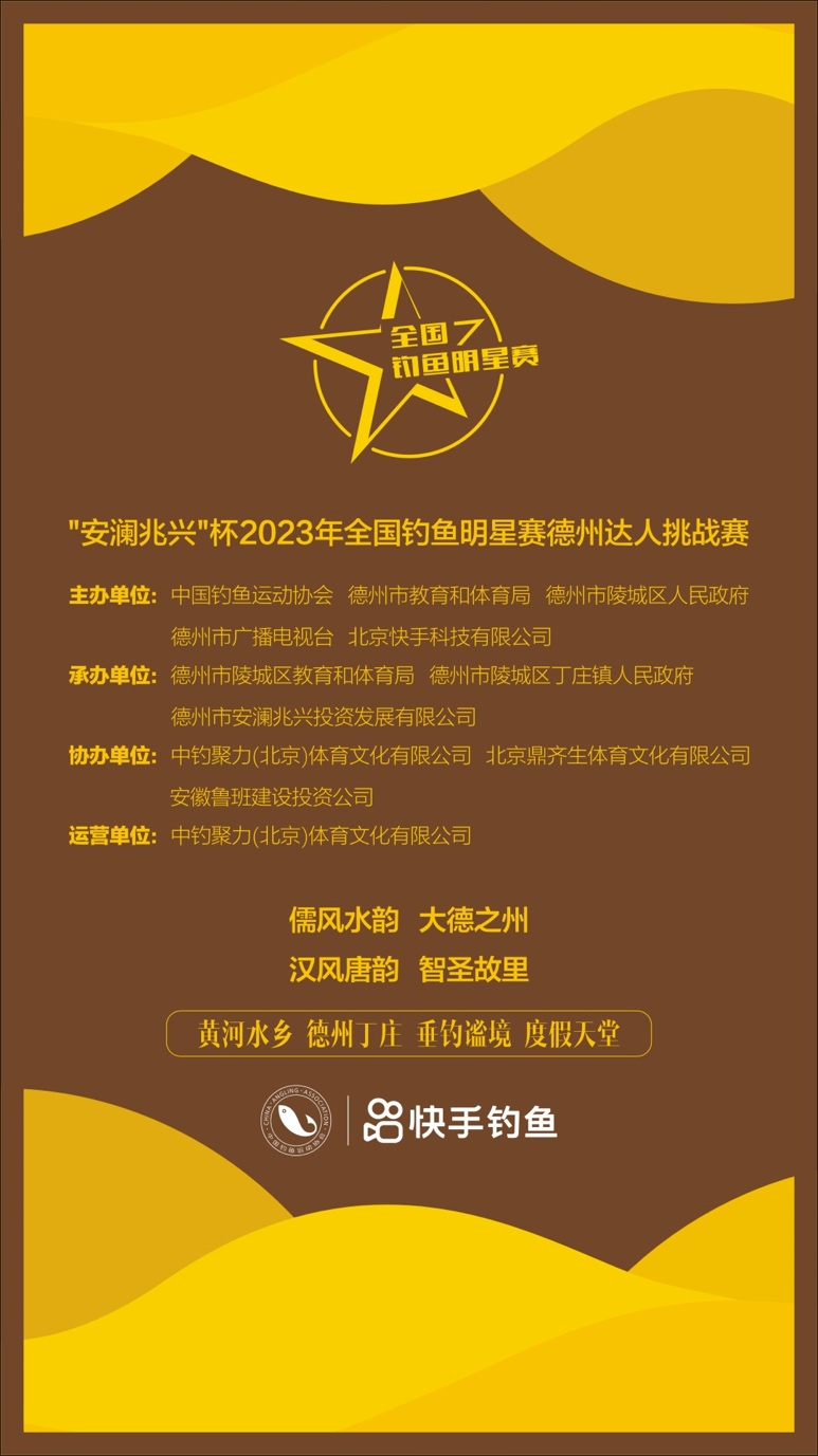 4月28日,由中国钓鱼运动协会(下简称“CAA”)、德州市人民政府和快手联合主办的“2023年全国钓鱼明星赛山东德州达人挑战赛”,即将在德州市陵城区印象大薛庄景区开赛,并将在快手账号@中国钓鱼运动协会 进行同步直播。届时,山东省体育局、德州市委和市政府等单位、CAA、快手体育等领导将出席本次活动。