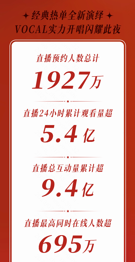 据悉,整场直播预约人数总计近2000万,直播最高同时在线人数突破695万,直播24小时累计观看量超5.4亿。在亮眼的数据之外,#蔡依林与勇气熊姐妹15年后重逢#等话题更是引发全网热议,据悉,蔡依林此次活动的全网曝光量高达123亿,斩获全网热搜246个,华语天后的强大号召力可见一斑。