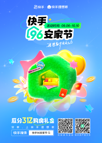 原标题: 快手理想家9.6安家节上线 3亿购房礼金率先拉开“金九银十”序幕