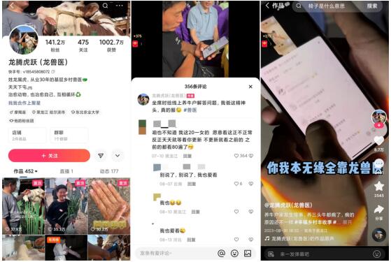 如今,越来越多的养殖户告诉龙兽医,自己远在北上广深工作的孩子也在刷他的视频。行医视频中鲜有萌宠的可爱瞬间,多的是一场场惊心动魄的手术,为什么受到年轻人青睐呢?龙兽医在评论区找到答案:“他们反馈,以我儿子的口吻讲述爸爸的故事,再加上一份简单纯粹的乡村情,让年轻人特别有代入感。如果我一两天不发视频,他们还会不停留言,问为啥还不更新。”