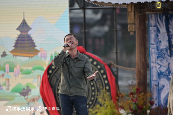 11月4日,贵州黔东南凯里下司古镇,一位身穿军绿色外套的中年大叔,站在快手乡村超级碗的舞台上,面对着上千名观众,唱着老男孩,有点局促,又很兴奋,在间奏期间向观众挥着手。